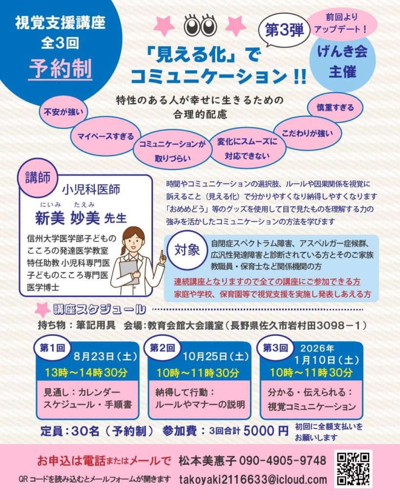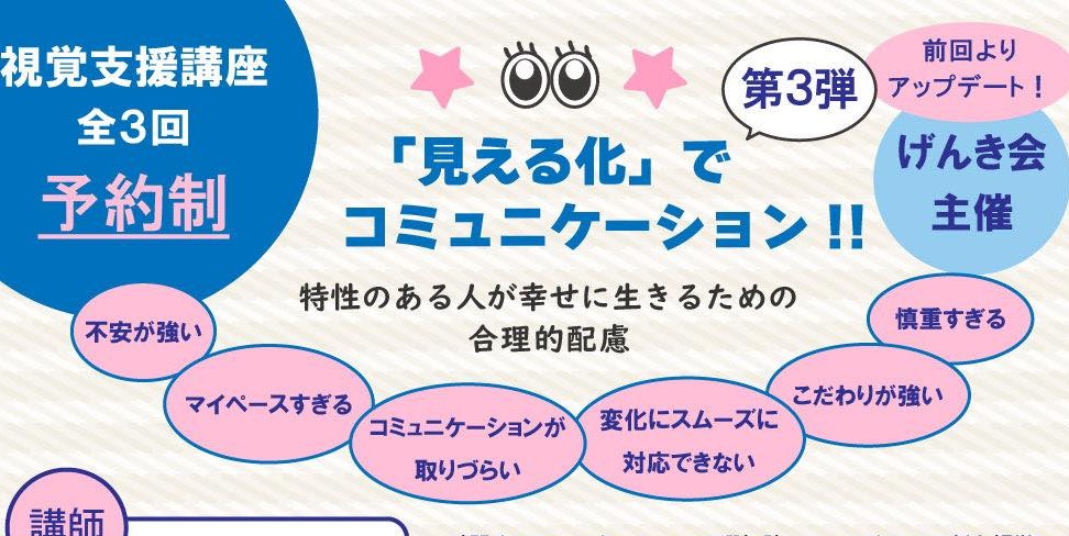 全3回参加できる方、家庭・職場で視覚的支援を実践し、発表しあえる方