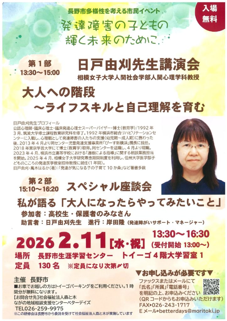 お問合せ先:社会福祉法人森と木 ながの地域相談支援センターベターデイズTEL:026-259-9975