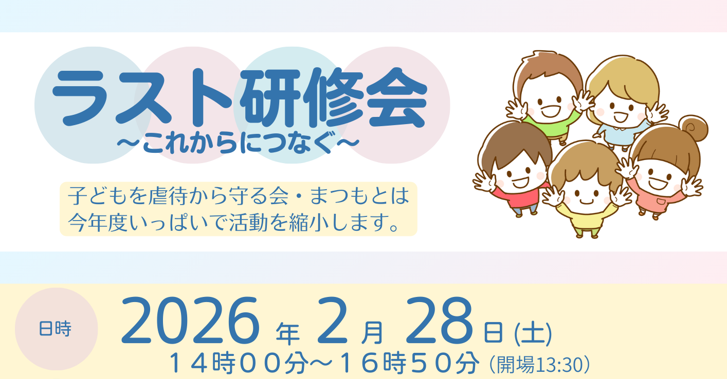 中信地域で、児童虐待をなくすために20年余り活動してきた「子どもを虐待から守る会・まつもと」が、今年度いっぱいで活動を縮小することになりました。活動の集大成として、未来に思いを伝えていくための「ラスト研修会」を企画しております。